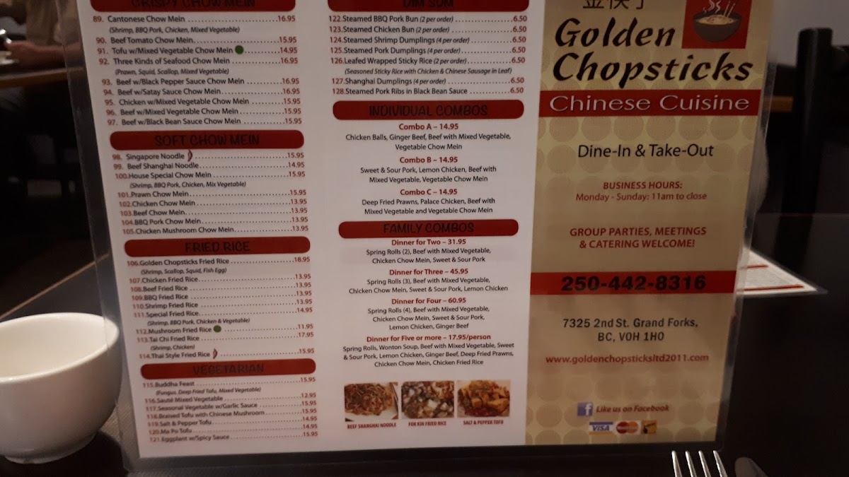 Golden Chopsticks II, located at 7325 2 St, Grand Forks, BC, offers a diverse and mouthwatering menu that caters to a variety of tastes. Whether you're in the mood for appetizers, hearty entrees, or a delicious hot pot, this restaurant has something to satisfy everyone.